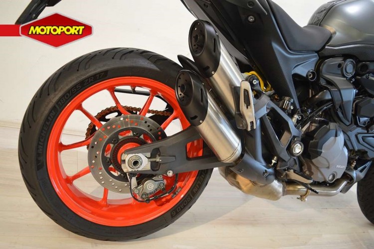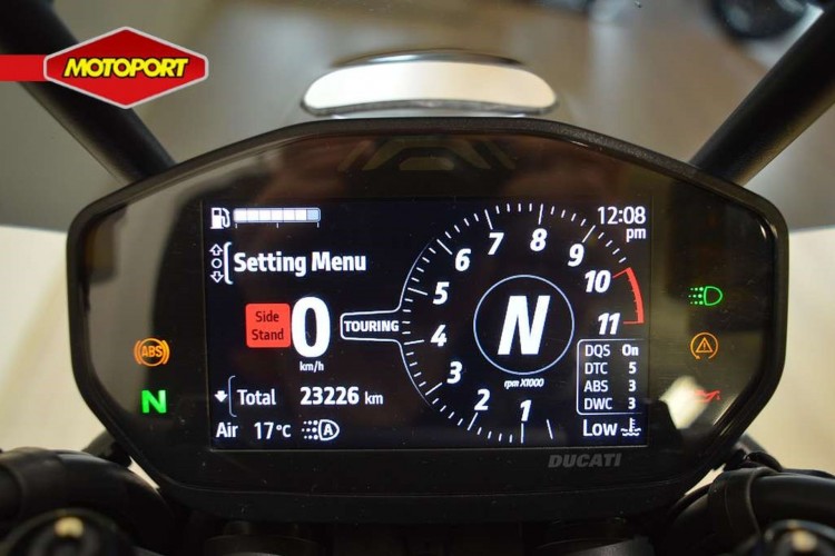 Deze van 1e eigenaresse afkomstig Monster verkeert in zeer nette staat en is voorzien van ABS, DTC, Rijmodi, Quickshifter, LED koplamp, Dynamische LED knipperlichten, Handvatverwarming, Smoke windscherm, Radiator beschermer, Ducati verlagingsset en Puntbak in kleur.