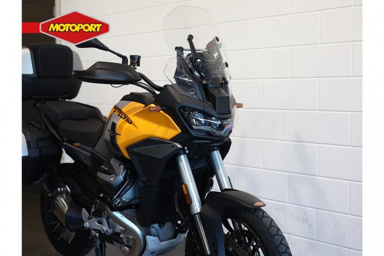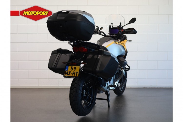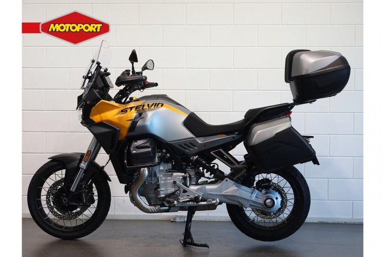 Deze zo goed als nieuwe Moto Guzzi Stelvio is net ingereden en uitgevoerd met PFF radar detectie systeem, originele Moto Guzzi 3-delige kofferset, middenstandaard, motorbeschermbeugels, handvatverwarming en een Quickshifter.