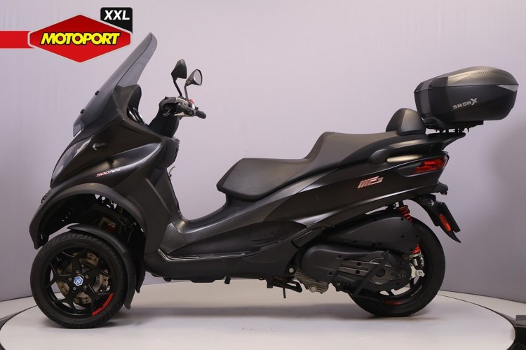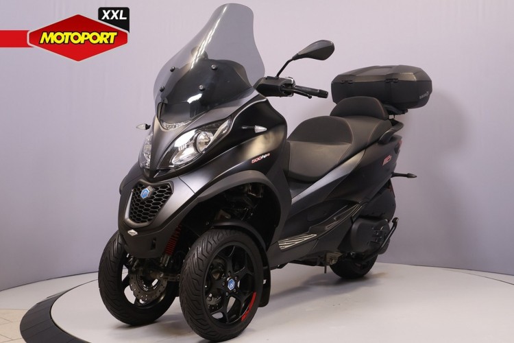 Deze Piaggio is voorzien van het vernieuwde 500 HPE motorblok en compleet gemaakt met een hoog windscherm en topkoffer.