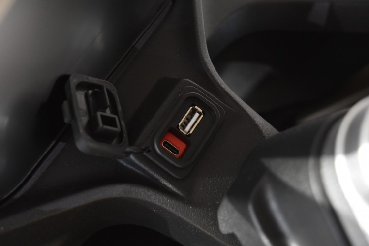 Ook deze QJMOTOR is af fabriek compleet uitgevoerd met ABS, Traction Control, Bandenspanningscontrole, Bluetooth connectiviteit met mogelijkheid tot navigeren en USB-C en USB-A aansluiting.