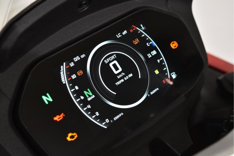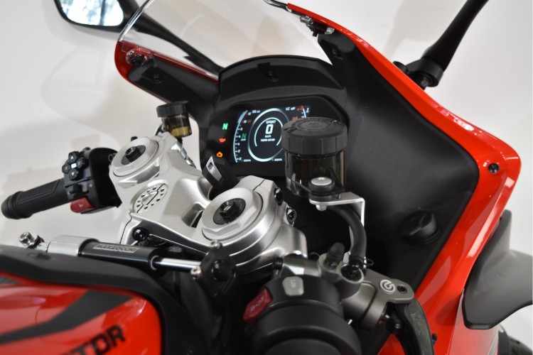 Af fabriek uitgerust met ABS, TCS, Quickshifter, Cruise-Control, Launch Control, 3 instelbare rijmodi, helder TFT display met smartphone connectiviteit, USB en USB-C aansluiting, Brembo remmen met stalen remleidingen en LED verlichting.