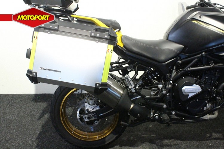 Uitgerust met een Off-road ontwerp, split-seat, breed aflopende tank, en voorzien van een transparante voorruit. Het 7-inch TFT-scherm geeft een uitstekende leesbaarheid van het paneel en de indicatoren. Met een 800 cc, parallelle twin en vloeistofgekoelde motor, levert hij een maximaal vermogen van 91,5 pk bij 9.000 tpm. Piekkoppel bij 77 Nm bij 6.500 tpm.