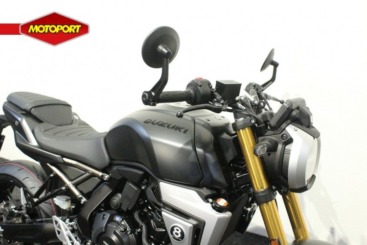 De Suzuki GSX-8T is een opvallende verschijning in het Street-segment. De ronde LED-koplamp, geïnspireerd op Suzuki-motorfietsen uit de jaren 60 en 70, is voorzien van geïntegreerde contourverlichting. Karaktervol design met een moderne twist: de iconische 16,5-liter tank, goudkleurige voorvork en luxe afwerking maken het plaatje compleet: met deze motor val je op.