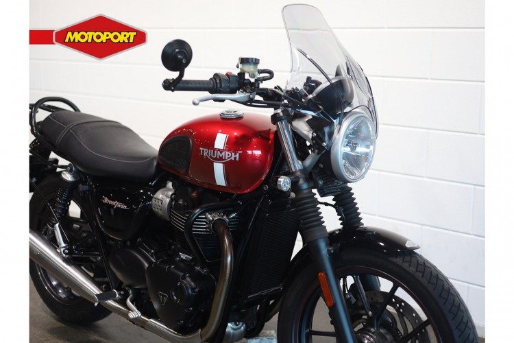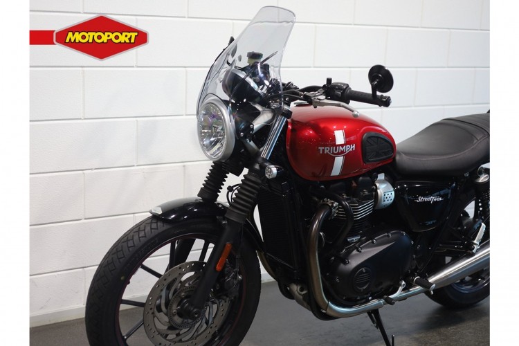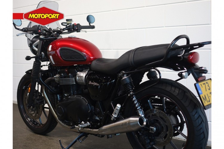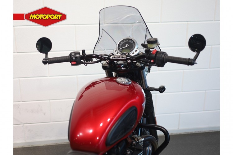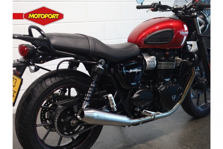Deze nette Triumph Street Twin is afkomstig van de eerste eigenaar. De motor is keurig onderhouden. In november 2025 is door ons de laatste grote onderhoudsbeurt uitgevoerd. Het serviceboekje met de onderhoudshistorie wordt bijgeleverd. Verder is de motor voorzien van bar-end spiegels, motor beschermbeugels, bagagedrager, zijtassen dragers, windscherm en Vance & Hines uitlaatdempers.